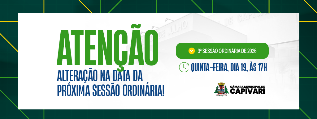 Atenção para a mudança na data da próxima Sessão Ordinária: 19/02.