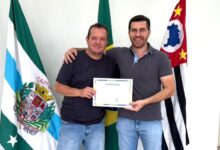 Presidente da Câmara, Rafael Massouh, ao lado do prefeito Vitão Riccomini e…